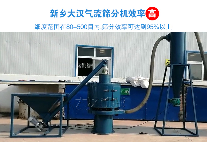 大漢氣流篩分機可對細度范圍在80-500目內(nèi)的粉狀物料很好的連續(xù)篩分,其篩網(wǎng)受旋風(fēng)沖刷,可自行進行清網(wǎng),篩分效率可達到95%以上,產(chǎn)量是普通振動篩的5-10倍或更高。