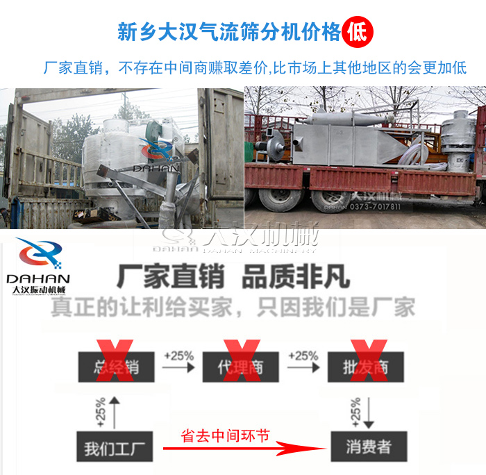 新鄉(xiāng)大漢氣流篩分機廠家直銷,不存在中間商賺取差價,所以在大漢購買氣流篩分機相比市場上其他地區(qū)的會更加低。